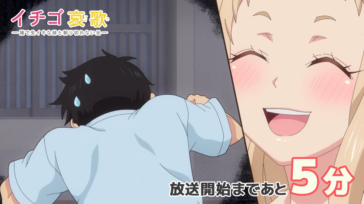 @IchigoaikaAnime┌ 🍓 ──────────┐ #イチゴ哀歌アニメ 次回予告 └────────── 🍓 ┘ 来週は 「イチゴ哀歌〜雑で生イキな妹と割り切れない兄〜」 第5話『アイカちゃん危機一髪!』 をお送りします📺 🍓BS11 2/1(日)25時05分~ 🍓TOKYO MX 2/3(火)25時00分~ お楽しみに! pic.x.com/yQfejpBeBX