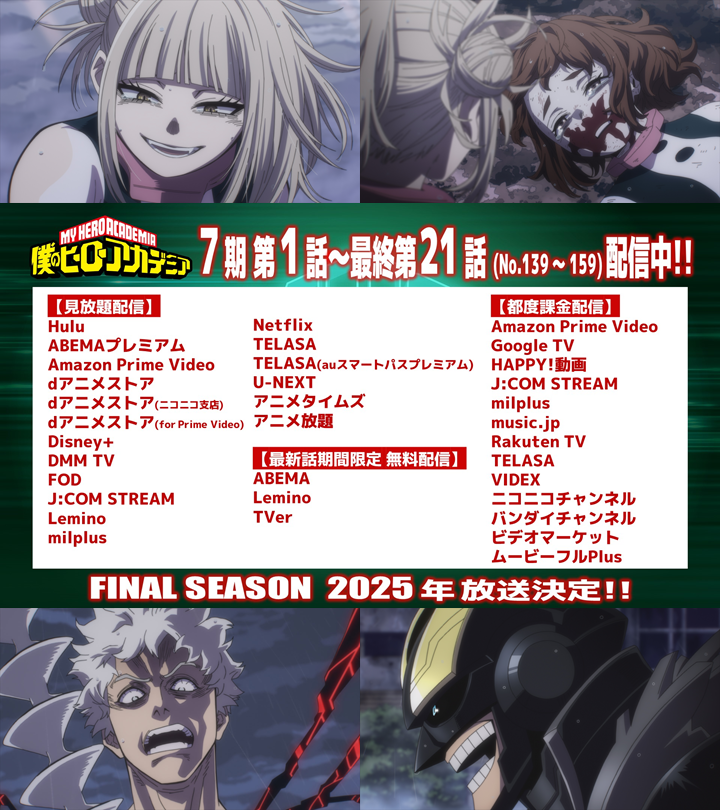 あの日から8年…アニメ『ヒロアカ FINAL SEASON』最終回・第11話先行カット・あらすじ公開 …、昨年8月についに完結を迎えた、堀越耕平氏による大人気コミック『僕のヒーローアカデミア』、通称“ヒロアカ”。“個性”と呼ばれる超常能力を持つ人々の存在… (出典:ABEMA TIMES) |