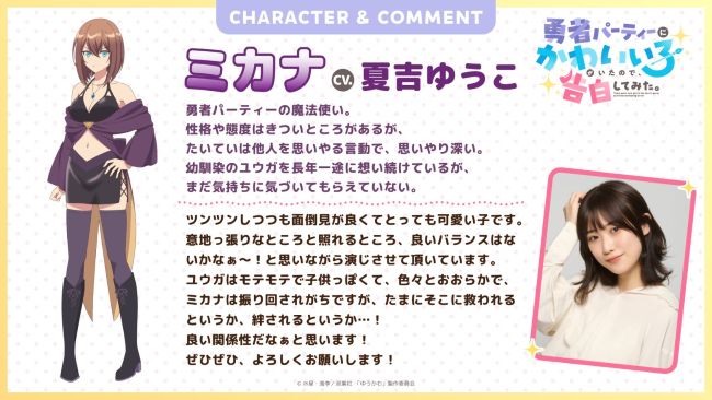@minako20211123【2026冬アニメ】㊾ 《勇者パーティーにかわいい子がいたので、告白してみた。》 天﨑滉平 花澤香菜 木村良平 夏吉ゆうこ 増田俊樹 田中美海 野口衣織 村瀬歩 OP:「Lavish!!」吉乃 ED:「キミ攻略ゲーム」大宮陽和 yuukawa-anime.com