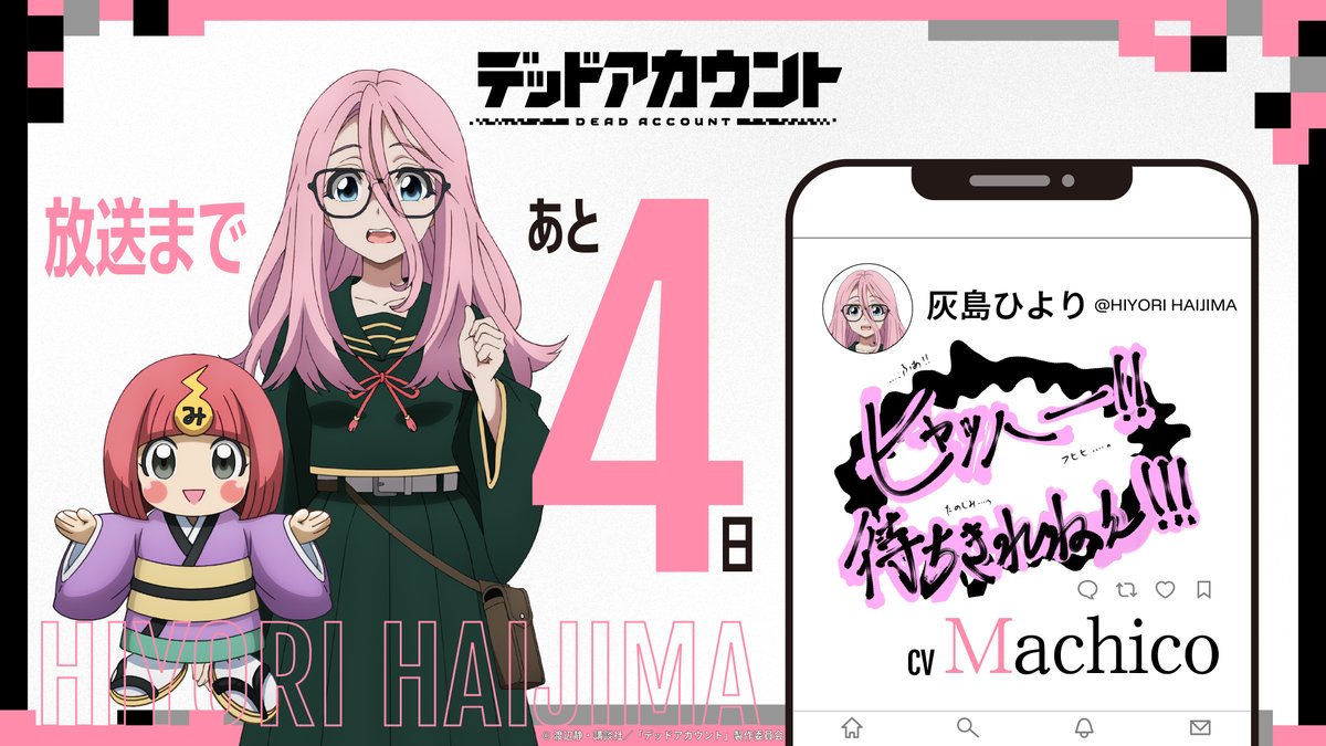 @darkmusiccry自室のテレビで“デッドアカウント”をリアタイできるっぽいから第1話はテレビで観よう。“真夜中ハートチューン”のときは気づくのに遅れたけど、今度は大丈夫。