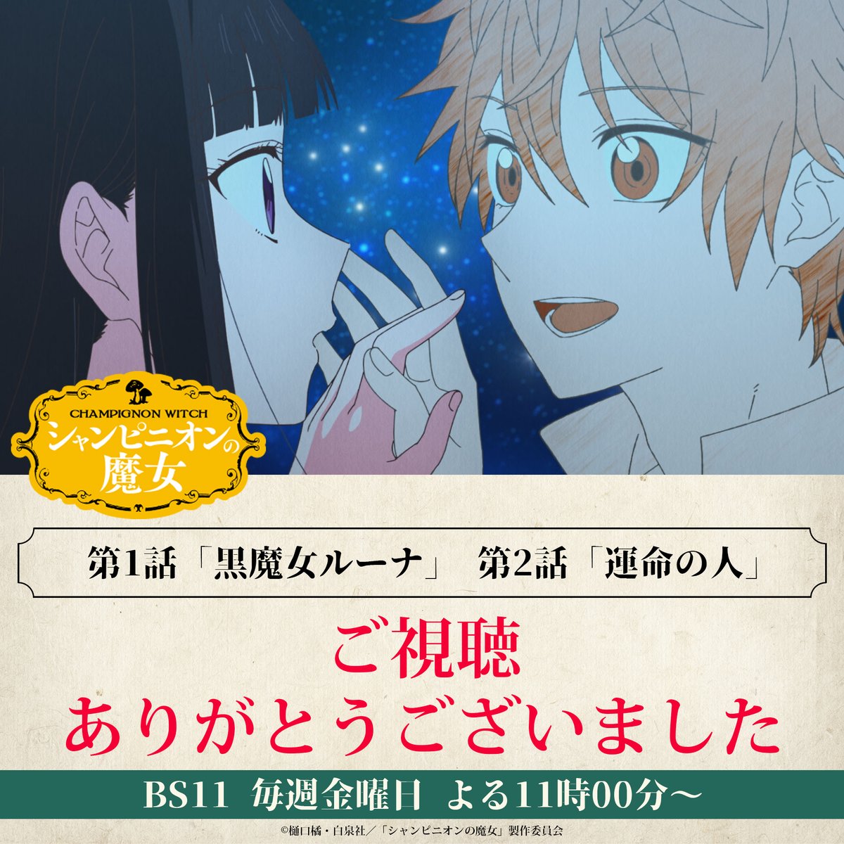 @aniverse_brsTBS・BS11他で好評放送・配信中! TVアニメ『シャンピニオンの魔女』 1月15日(木)より放送となる、第3話「呪いの仔」あらすじ・先行場面カット(6点)・各話スタッフ情報が公開! aniverse-mag.com/archives/357145 #シャンピニオンの魔女 pic.x.com/yqQxrZ6xs9
