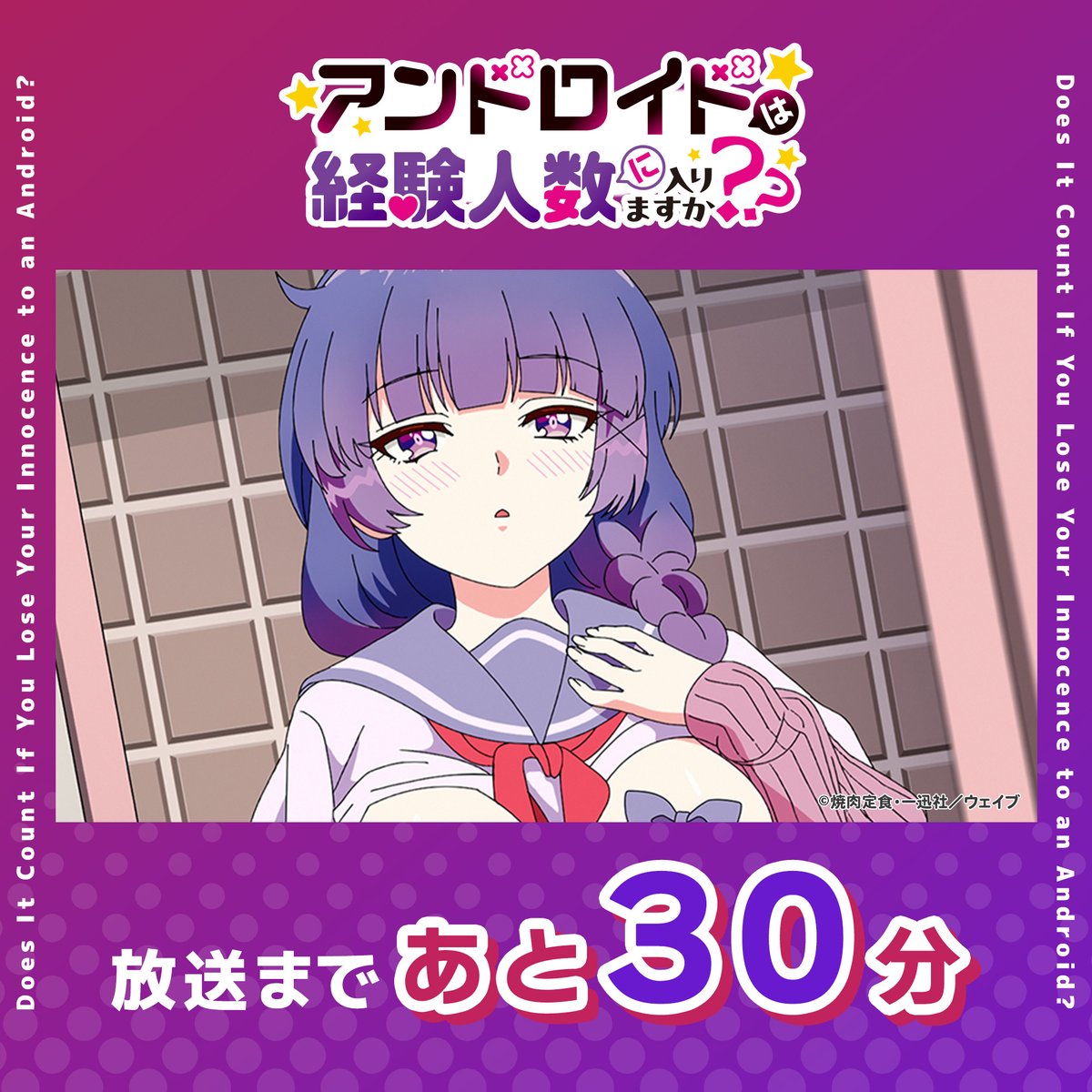 @ichijinsha_info【 #はにすか /一迅社宣伝】 💜本日第2話!⚡️ TVアニメ『アンドロイドは経験人数に入りますか??』第2話放送まであと30分!✨ 📺TOKYOMXにて毎週金曜深夜25:00~ @hanisuka_anime 📕原作コミックスお試し読み ichicomi.com/episode/255091… #はにすかアニメ pic.x.com/YlBhC3mira