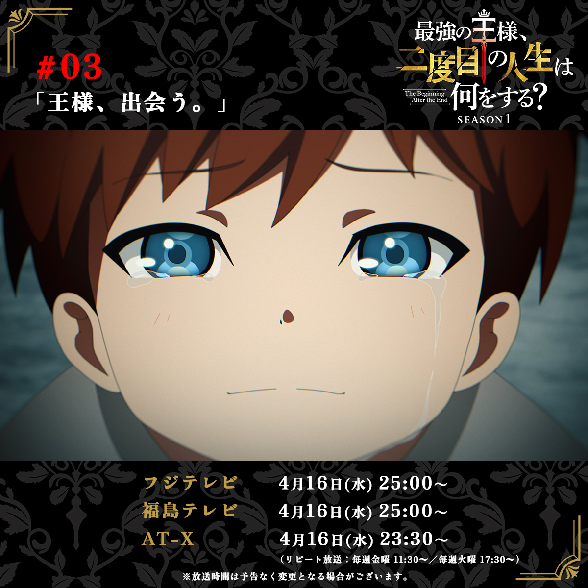 @ATX_PR1/21(水)23:30から 『最強の王様、二度目の人生は何をする? キャストオーディオコメンタリー版』第3話 AT-Xで放送! <キャスト> 藤原夏海 古川慎 市ノ瀬加那 金城大和 前田玲奈 小見川千明 高橋伸也 木村太飛 小倉弥優 明智璃子 ほか 🛰at-x.com/program/detail… #最強の王様 #TBATE #at_x