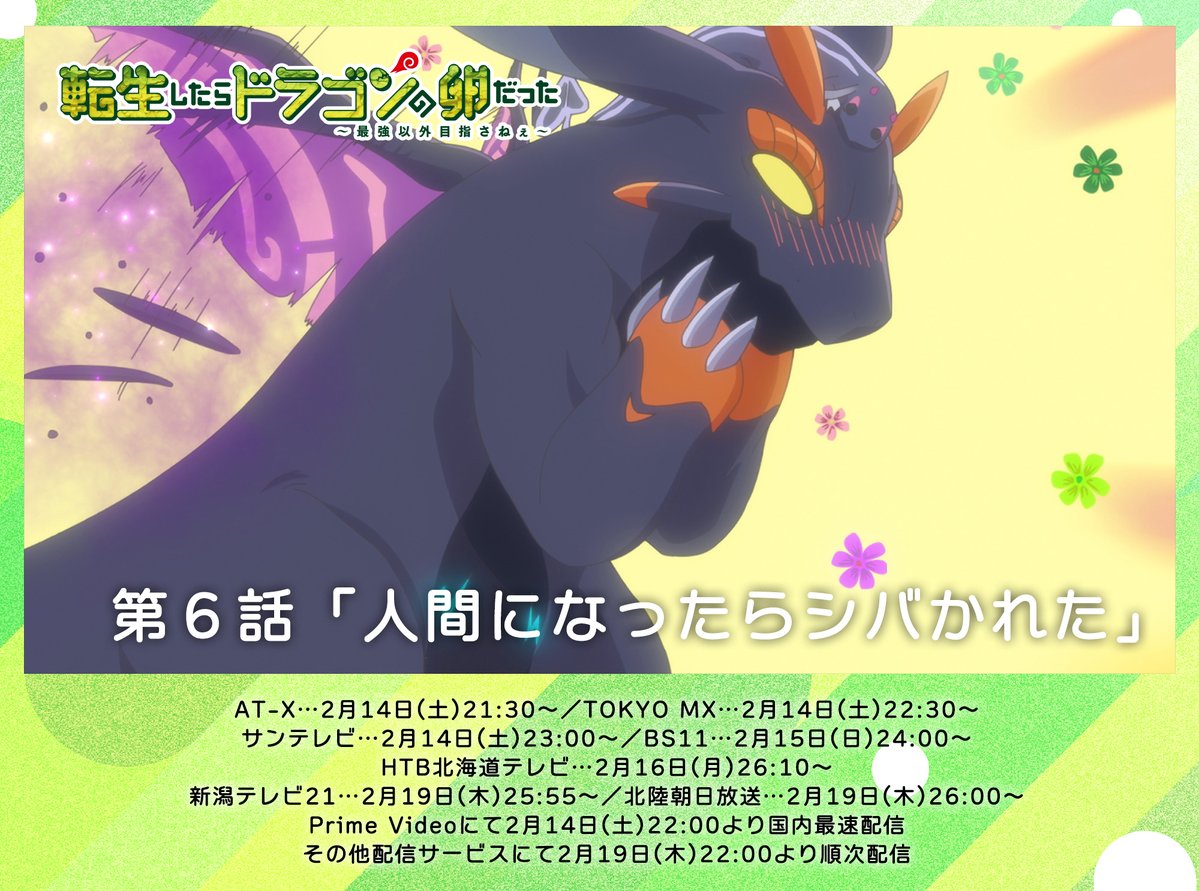 @doratama_anime⋱⋱ 第6話🥚放送まで2時間⋰⋰ TVアニメ『転生したらドラゴンの卵だった』 本日2月14日(土)放送日✨ 🥚第6話「人間になったらシバかれた」 🌟AT-X…21:30~ 🌟Amazon Prime Video国内最速配信…22:00~ 🌟TOKYO MX…22:30~ 🌟サンテレビ…23:00~ #ドラたま pic.x.com/Nm94s94pec