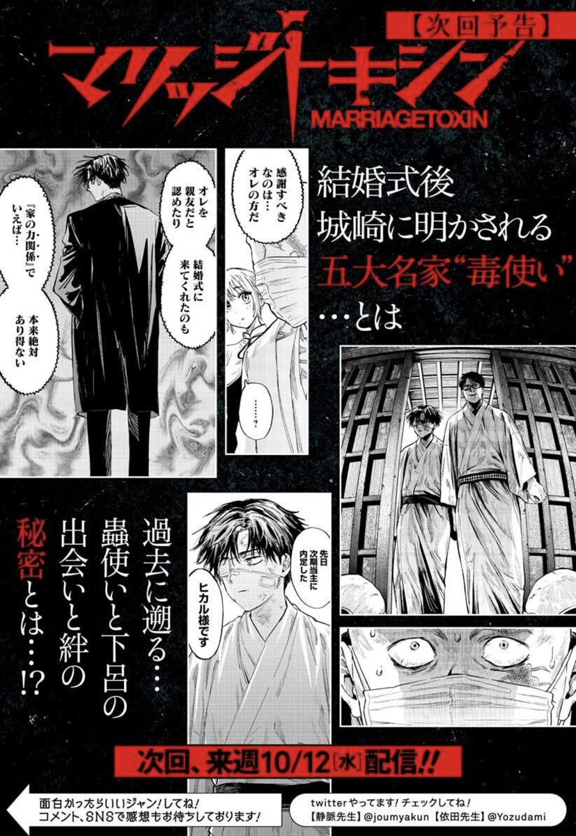 @joumyakun今晩アニメ & 最新話公開‼️ 『 #マリッジトキシン 』 23時🕚放映のアニメ第2話🦈🎉 そして…0時🕛配信の本編🦊🦇 どうぞよろしくお願いします🙇♀️🙇🙇♂️ アニメ第1話は各配信サイトにて❗️ ↓原作前話はこちらから‼️ shonenjumpplus.com/app/viewer/ec1… pic.x.com/7ZB9kdfSE2